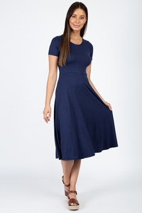 Fit and flare midi dress - Stretch knit - Short sleeve - Solid - 92% Polyester 8% Spandex