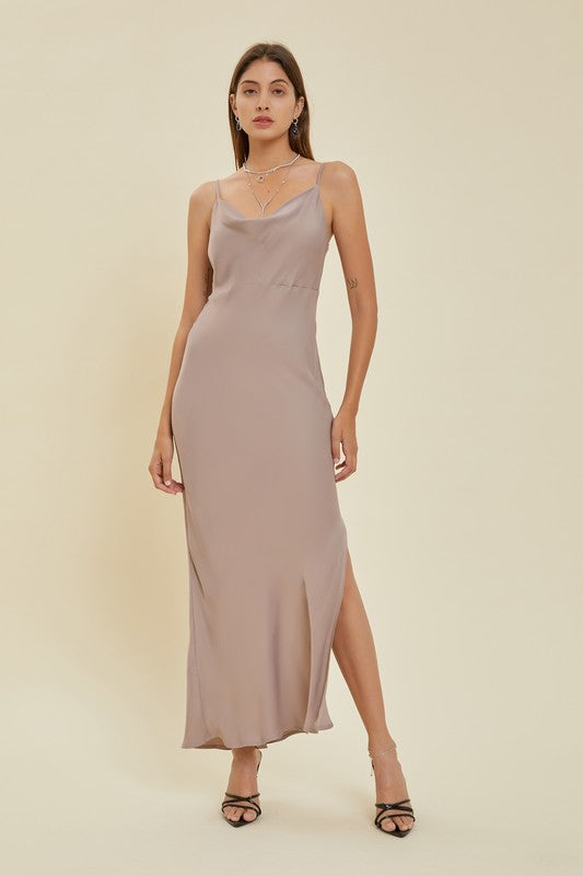 DRESS- MOCHA SLIP DRESS Cowl Neck