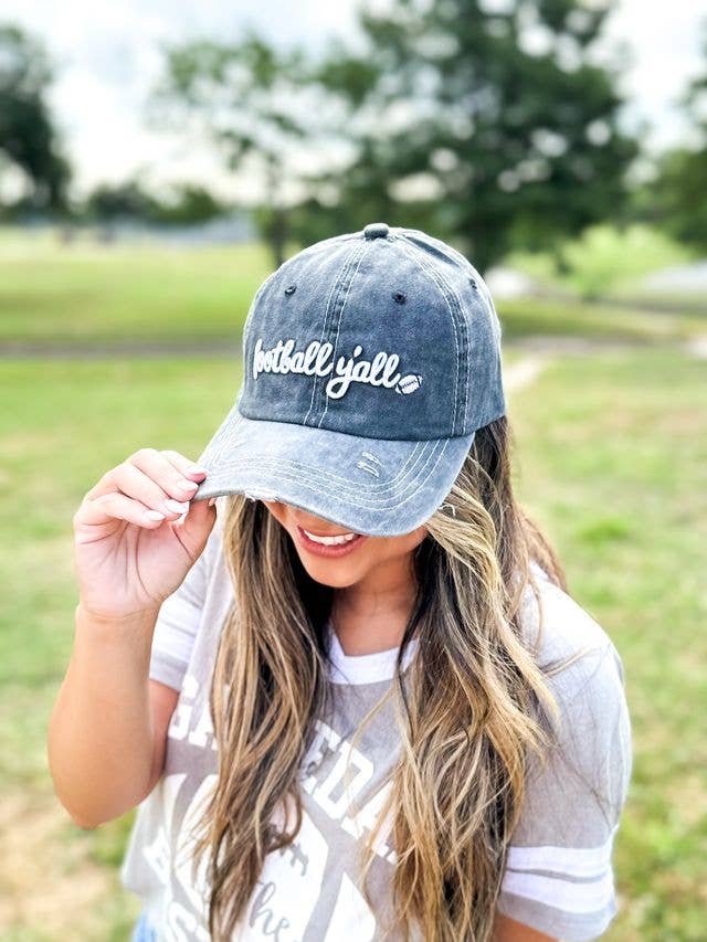 White Football Y'all Embroidery on Charcoal Hat